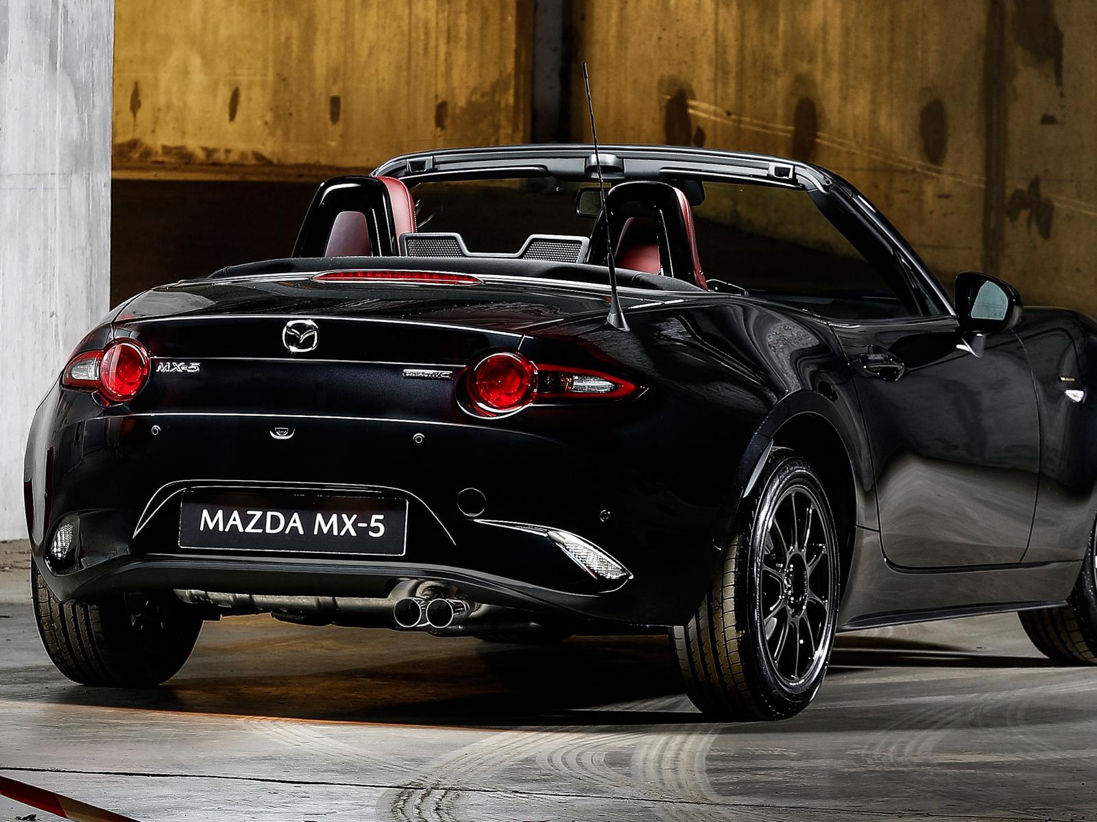 Обои Черный кабриолет Mazda MX-5 Eunos Edition 2020 года вид сзади