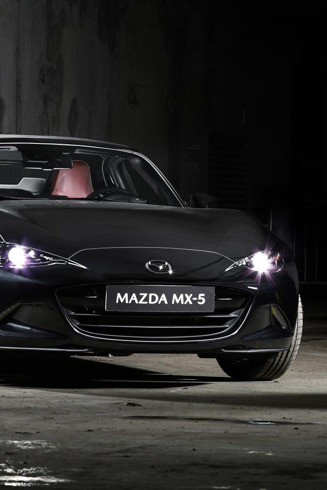 Обои Черный автомобиль Mazda MX-5 Eunos Edition 2020 года с включенными фарами