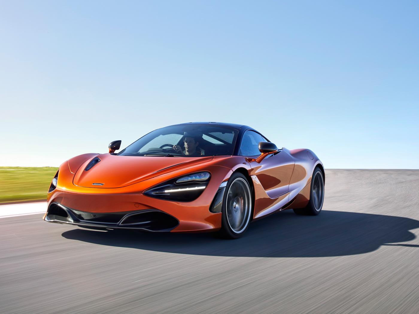 Обои Красный спорткар McLaren 720S Coupe на трассе