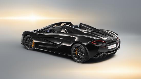 Обои Черный спортивный автомобиль McLaren 570S Spider вид сзади