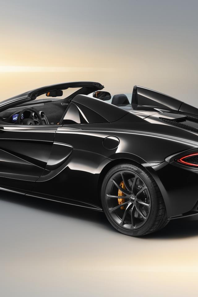 Обои Черный спортивный автомобиль McLaren 570S Spider вид сзади