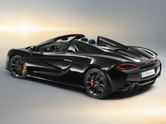Обои Черный спортивный автомобиль McLaren 570S Spider вид сзади