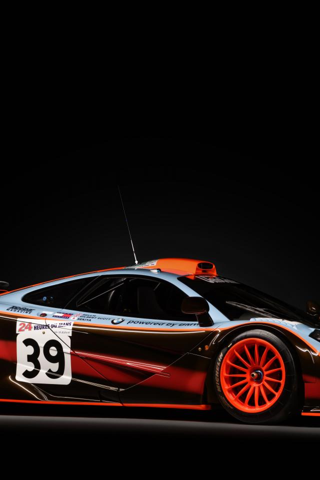 Обои Гоночный автомобиль McLaren F1 GTR 25 на черном фоне