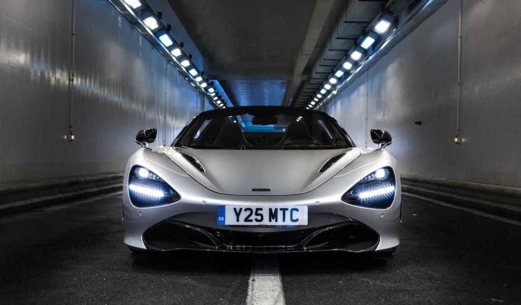 Обои Серебристый спортивный автомобиль McLaren 720S Spider, 2019 года в тоннеле