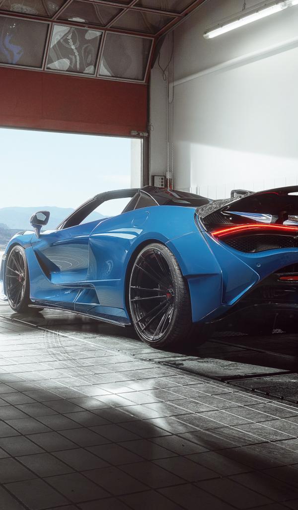Обои Спортивный автомобиль McLaren 720S, 2020 года выезжает с гаража