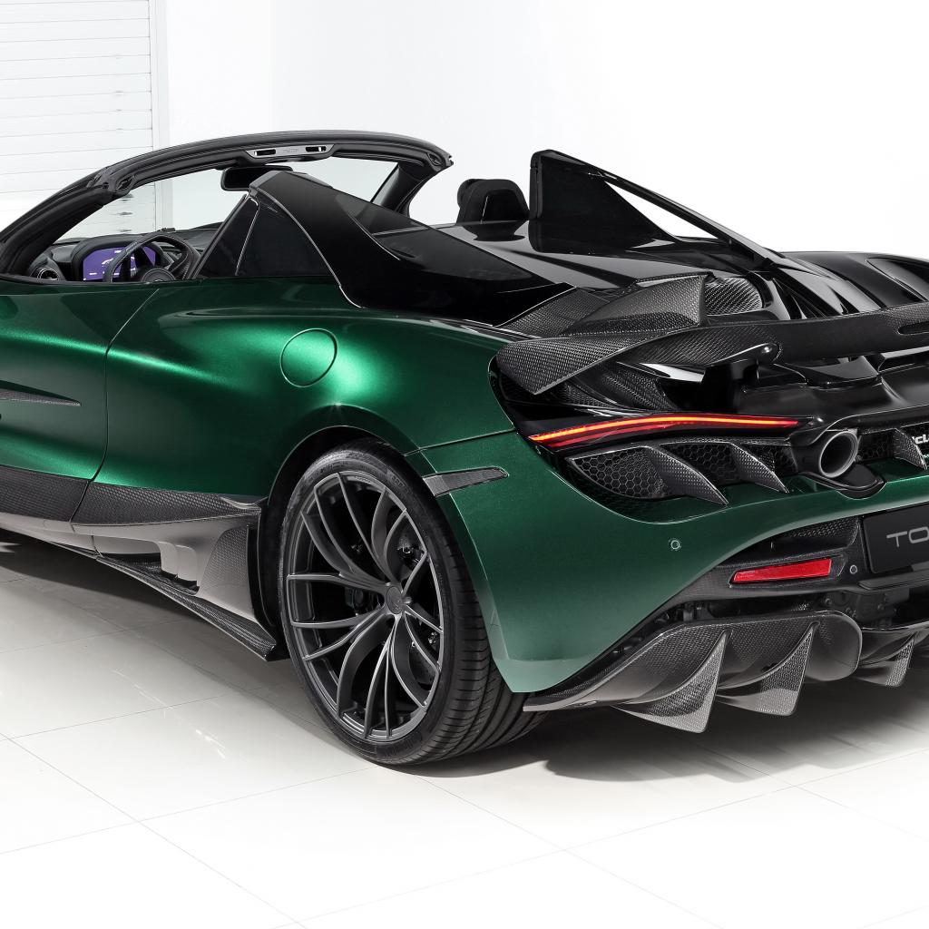 Обои Зеленый автомобиль McLaren 720S Spider Fury 2020 года вид сзади
