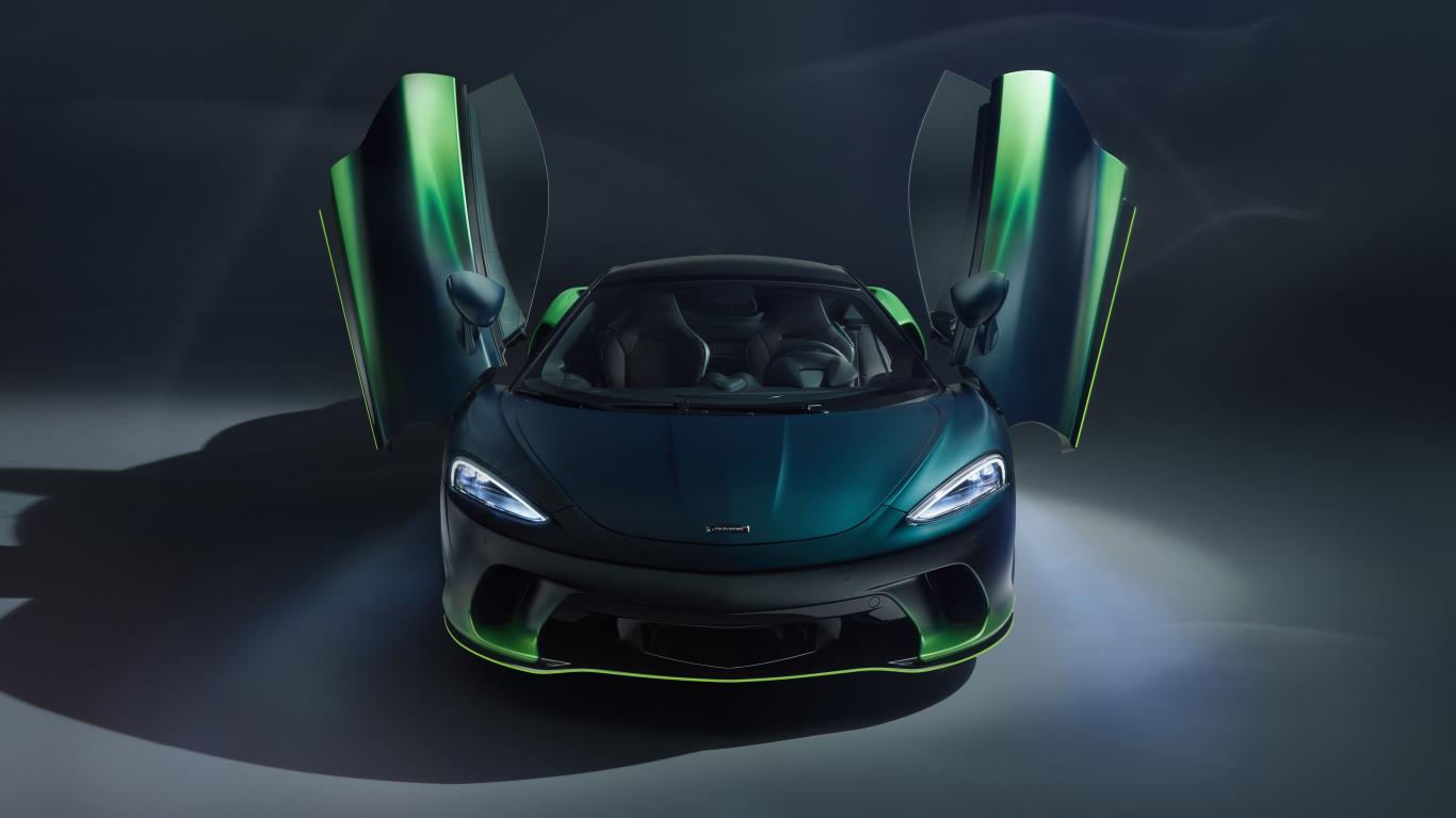 Обои Автомобиль McLaren GT Verdant Theme By MSO 2020 года с открытыми дверями