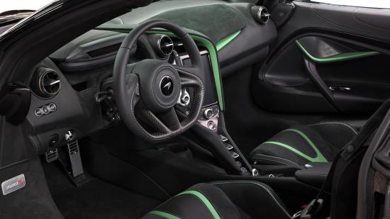 Обои Черный салон автомобиля McLaren 720S Spider Fury 2020 года
