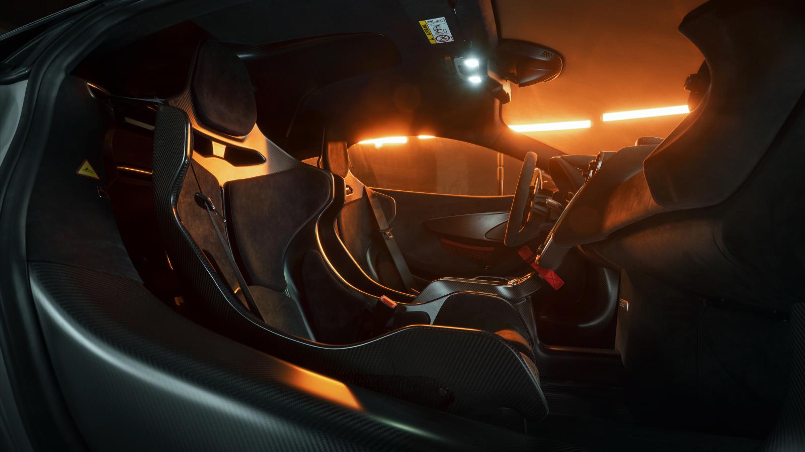 Обои Черный салон автомобиля McLaren 620R 2021 года