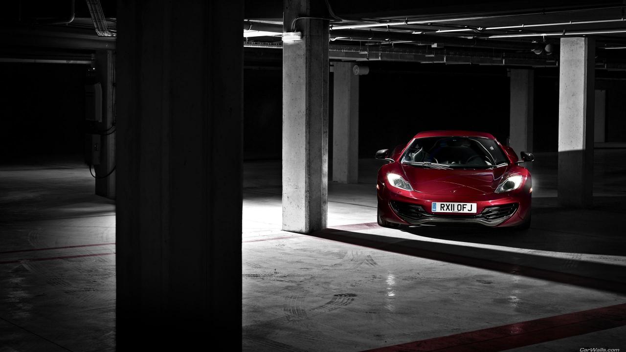 Обои Красный McLaren MP4-12C на подземной парковке