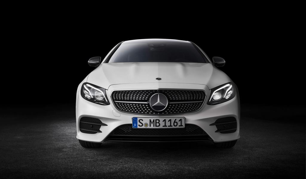 Обои Белый автомобиль Mercedes-Benz E-Class Coupe, 2018 вид спереди
