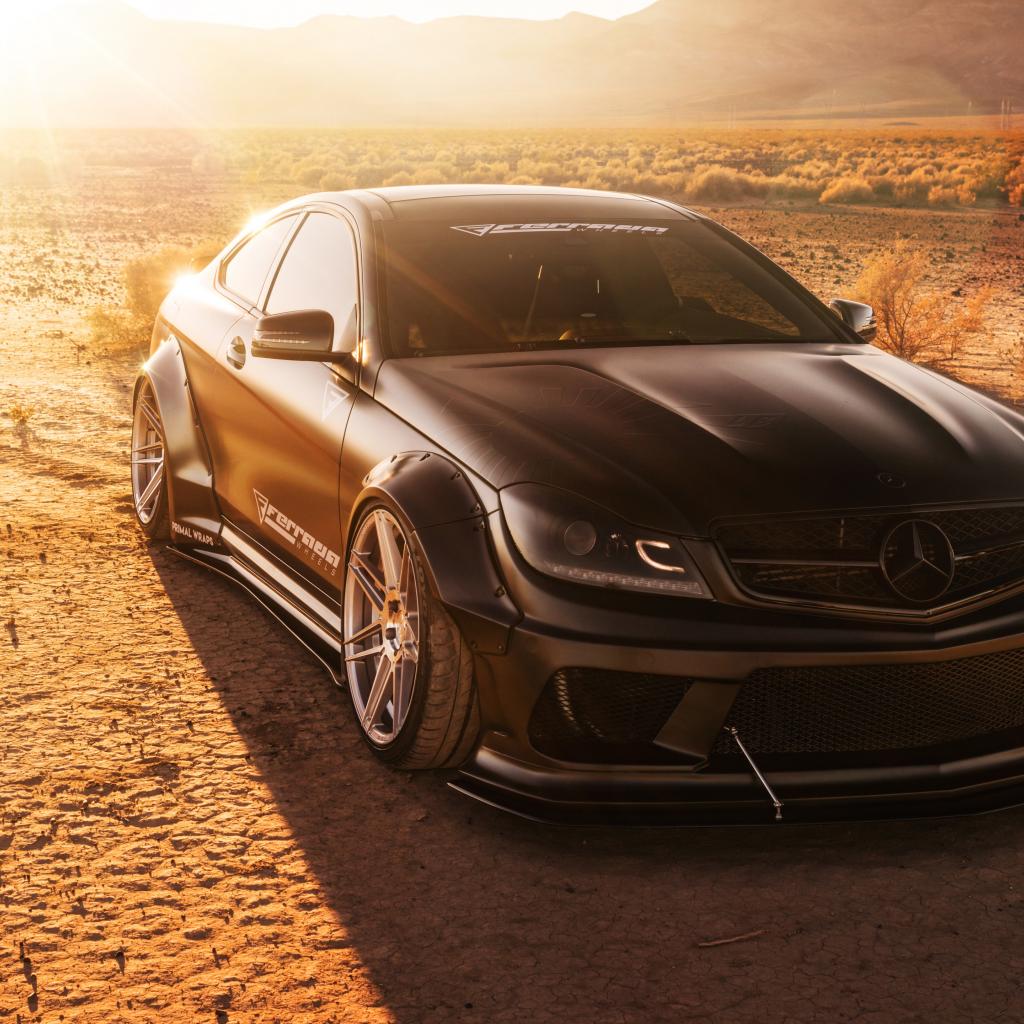 Обои Черный автомобиль Ferrada LW Matte Mercedes в лучах солнца