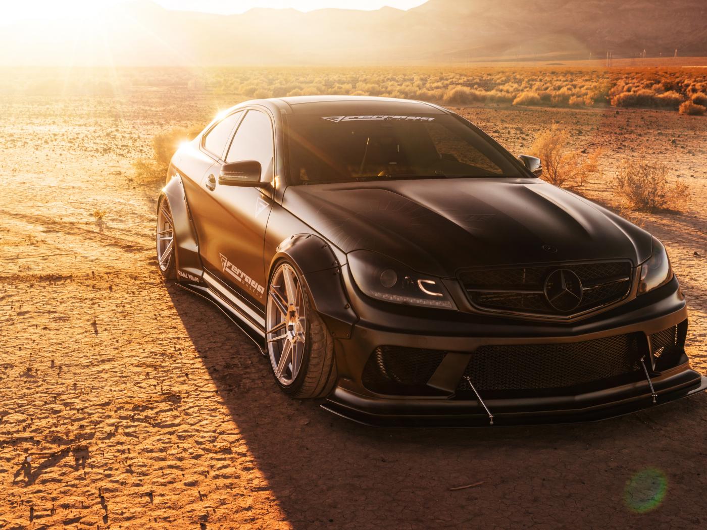Обои Черный автомобиль Ferrada LW Matte Mercedes в лучах солнца