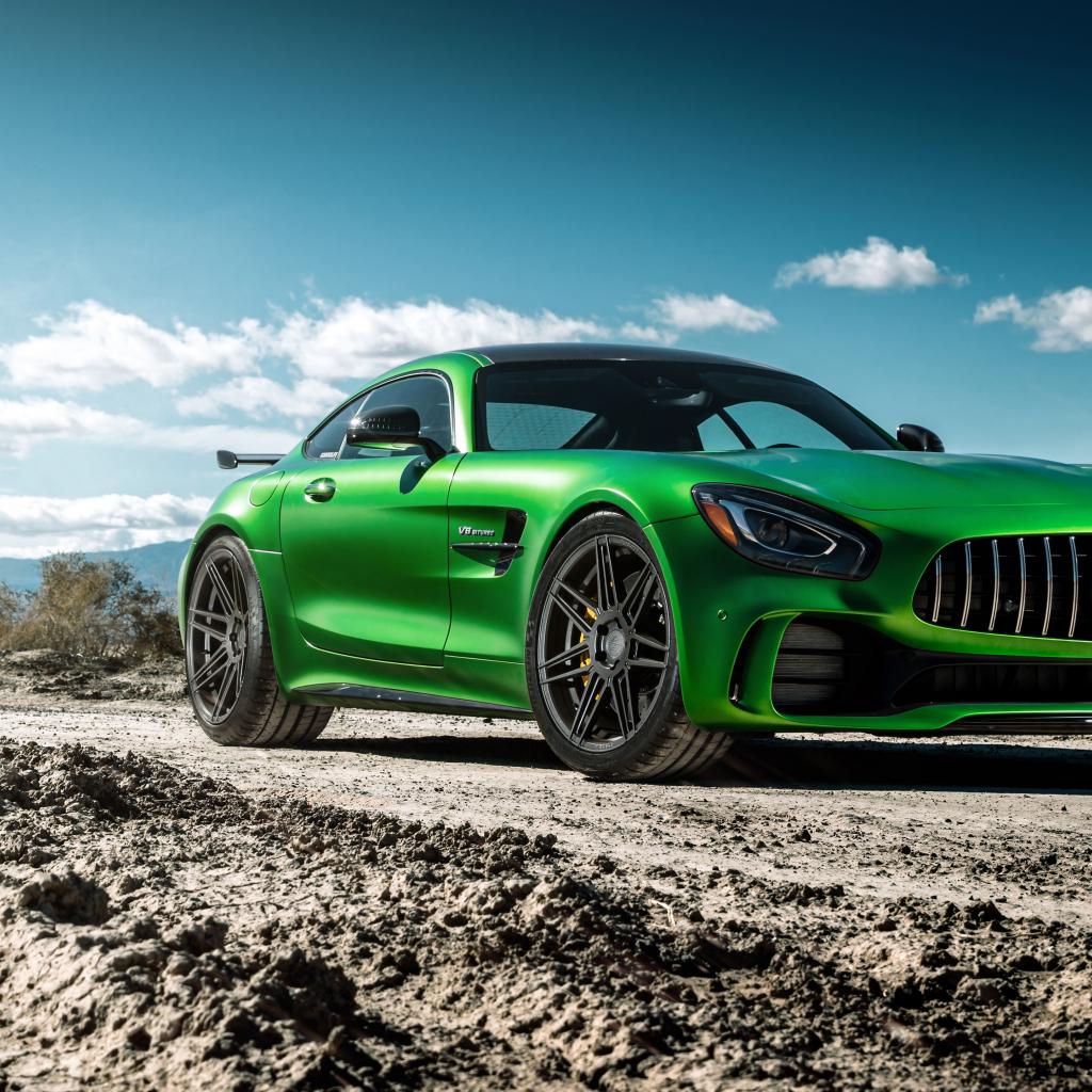 Обои Спортивный автомобиль Ferrada Sema Green Mercedes GTR на дороге