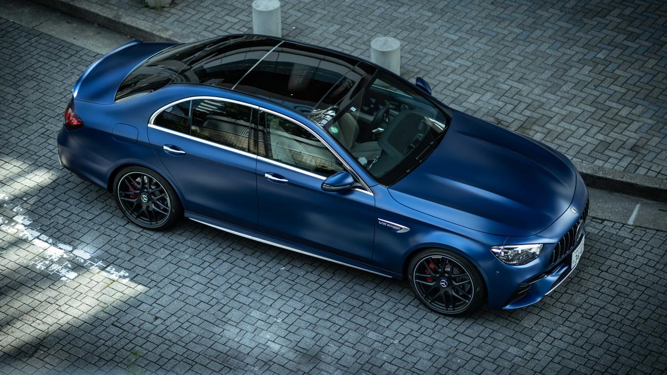 Обои Синий автомобиль Mercedes-AMG E 63 S 4MATIC+ вид сверху