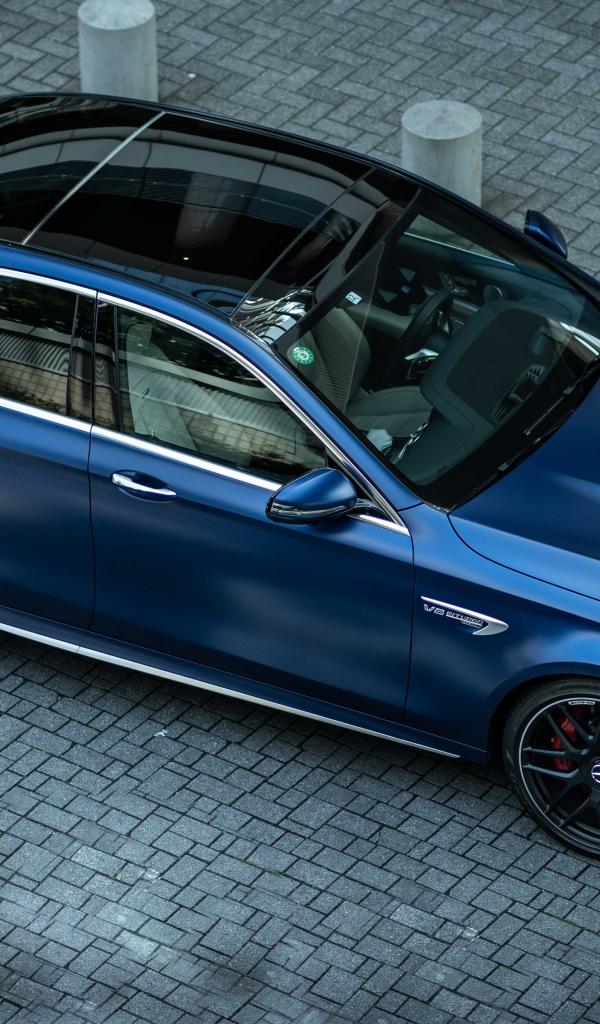 Обои Синий автомобиль Mercedes-AMG E 63 S 4MATIC+ вид сверху