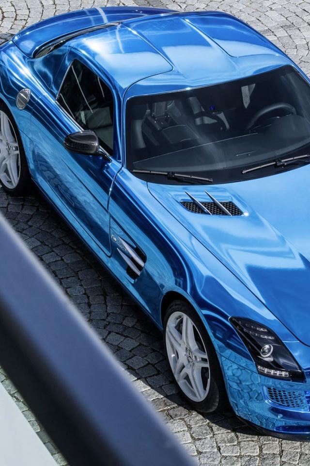 Обои Спортивный Mercedes SLS голубого цвета
