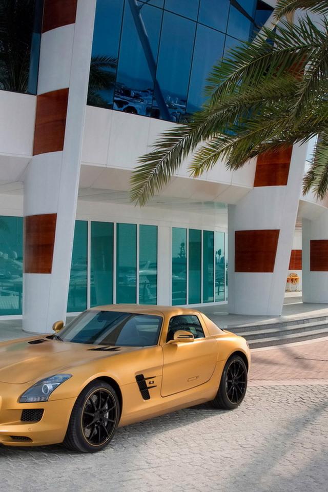 Обои Mercedes Benz SLS AMG Desert Gold при входе