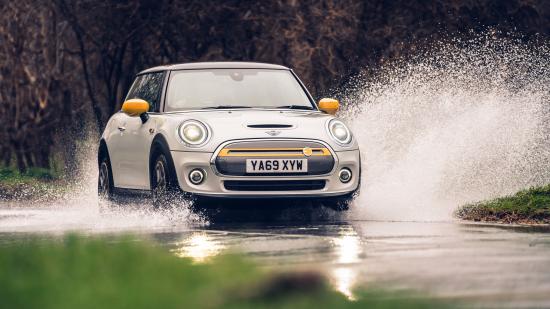 Обои Компактный MINI Cooper SE Level 2 2020 года едет по воде