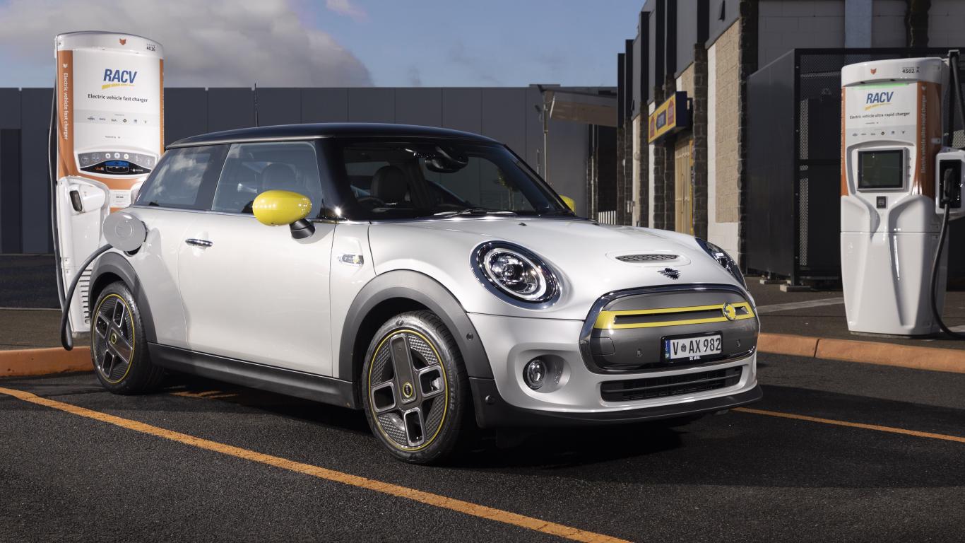 Обои Автомобиль MINI Cooper SE 2020 года на заправке