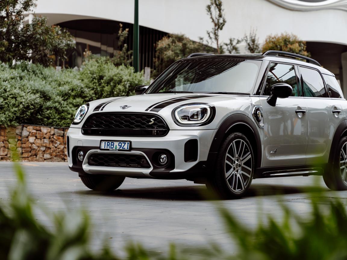 Обои Серебристый MINI Cooper SE Countryman ALL4 2021 года у дома