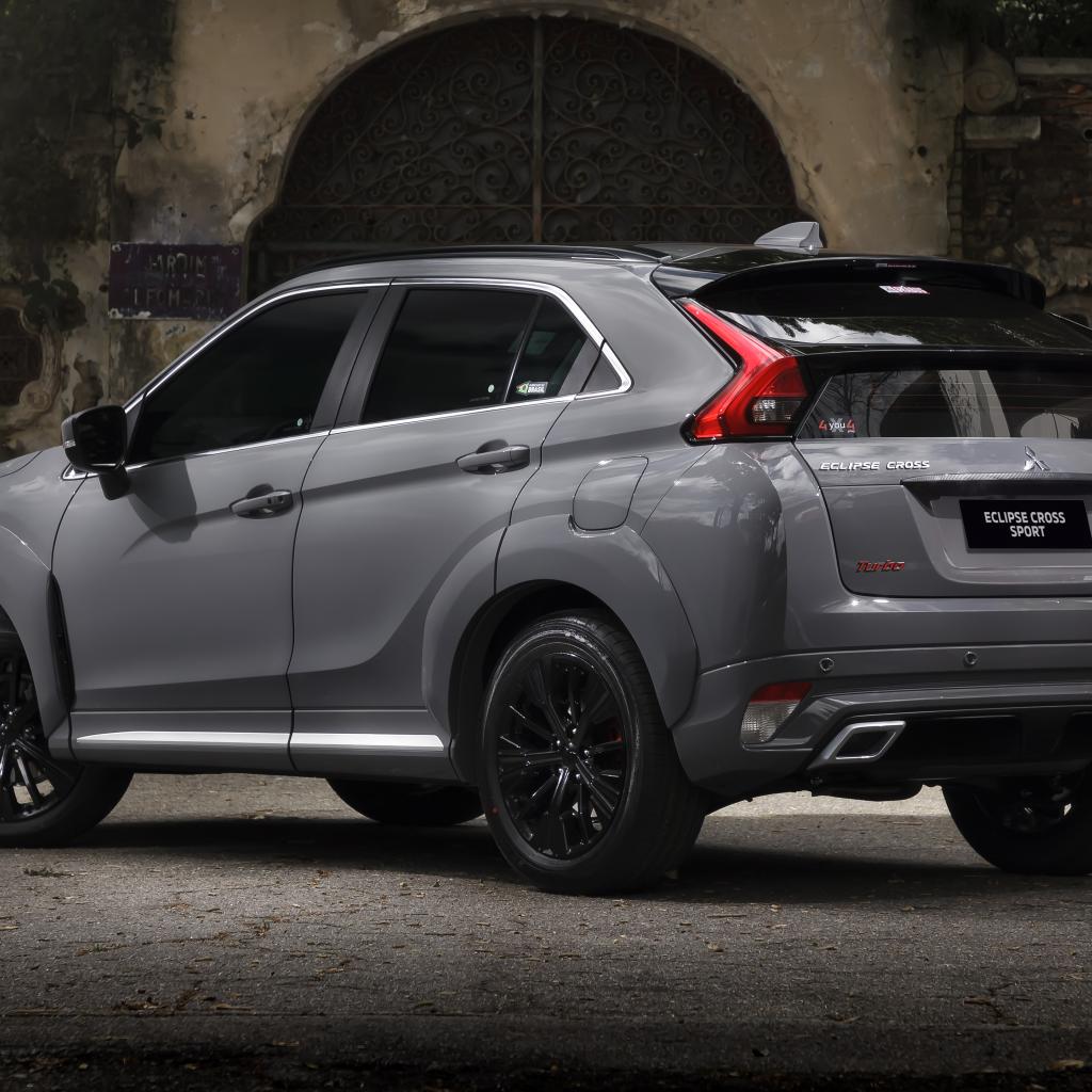 Обои Серебристый Mitsubishi Eclipse Cross Sport 2021 года вид сзади