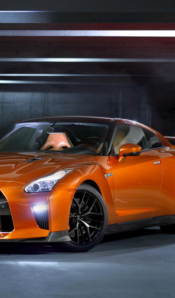 Обои Быстрый спортивный автомобиль Nissan GT-R оранжевого цвета