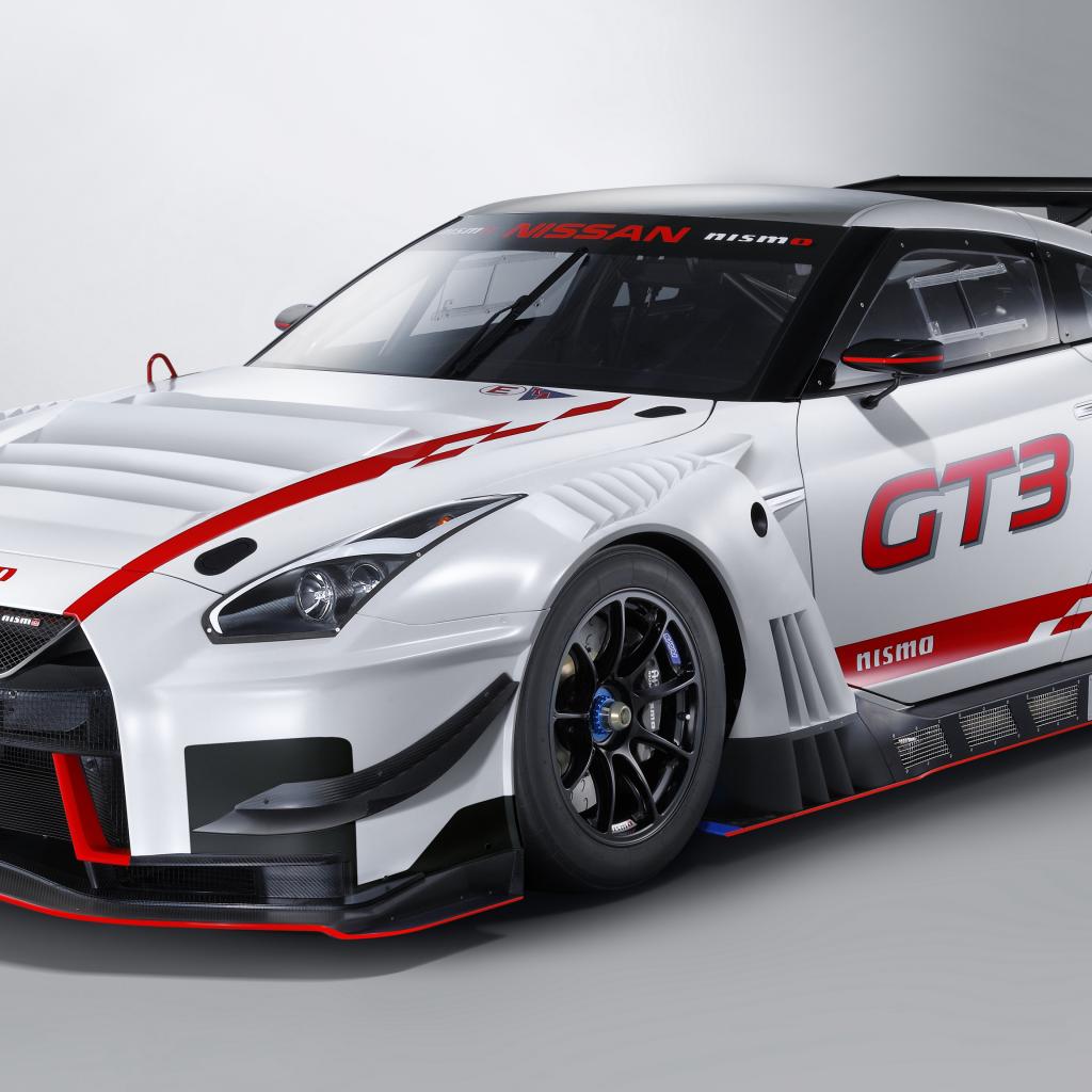 Обои Спортивный автомобиль Nissan GT-R Nismo GT3, 2018 на сером фоне
