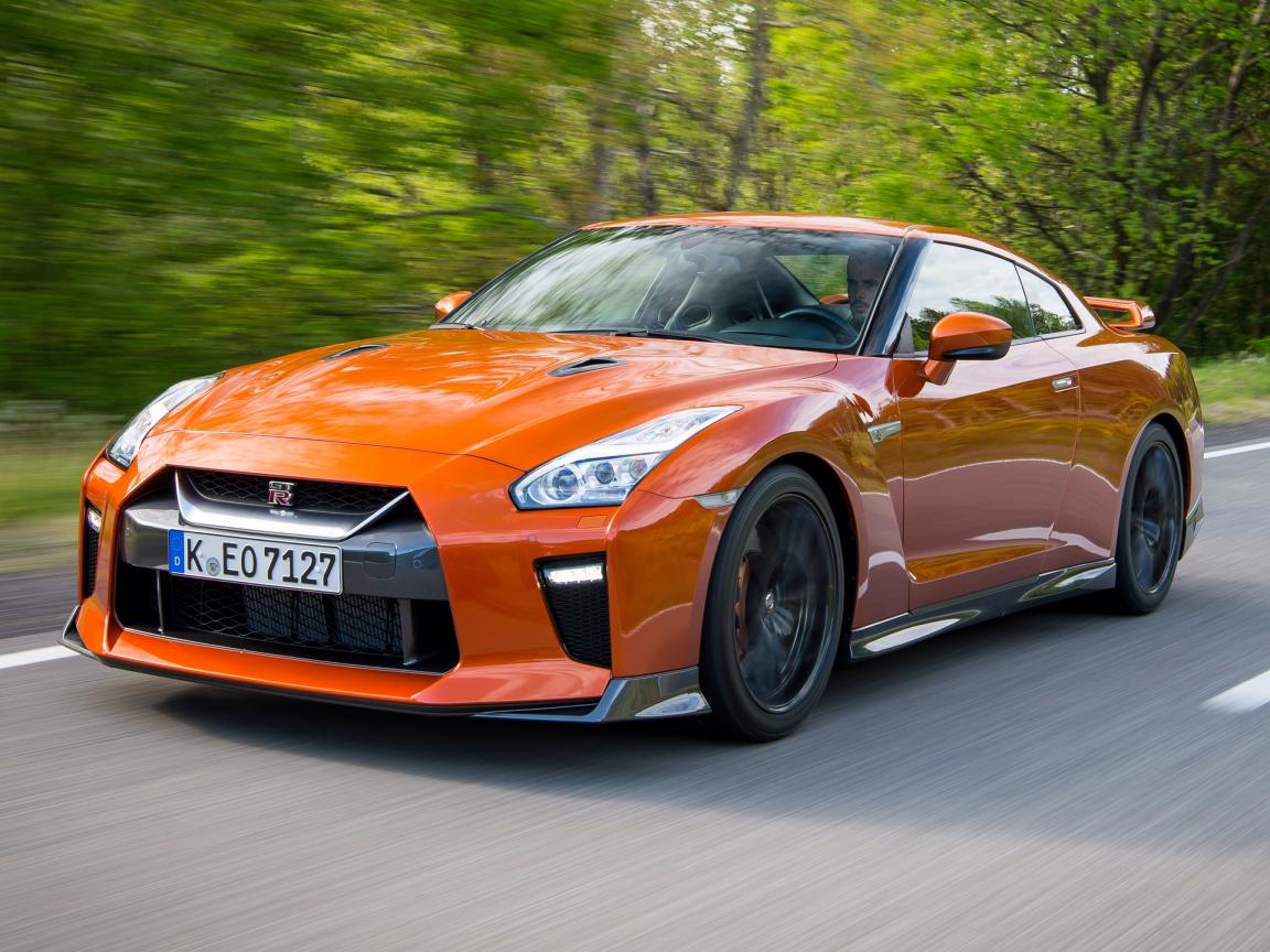Обои Оранжевый автомобиль Nissan GT-R на трассе