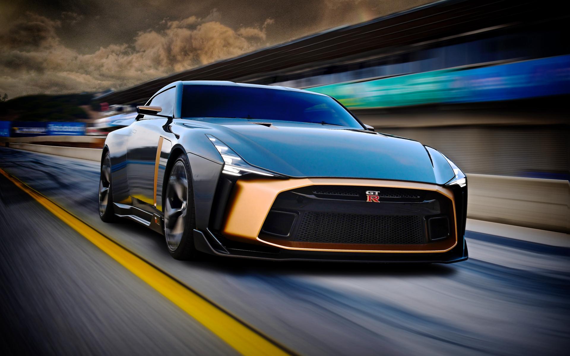 Обои Черный спортивный автомобиль Nissan GT-R50 2018 года на трассе