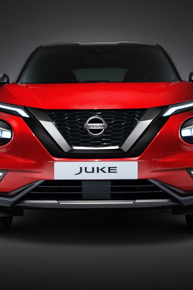Обои Красный автомобиль Nissan Juke 2019 года вид спереди