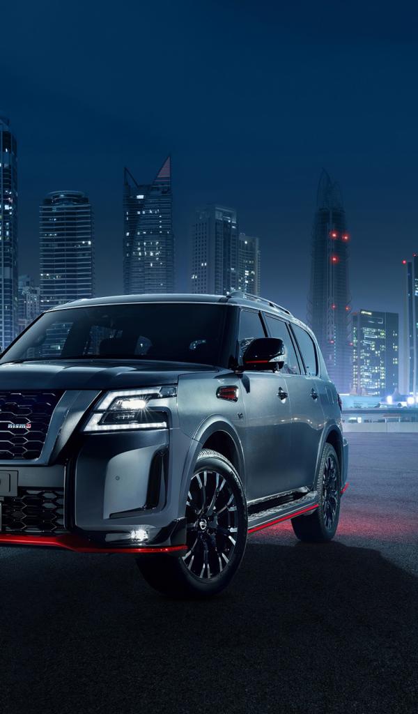 Обои Автомобиль Nissan Patrol Nismo 2021 года на фоне города