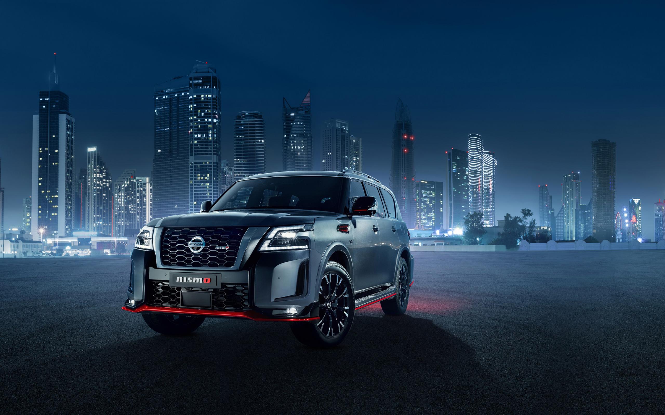 Обои Автомобиль Nissan Patrol Nismo 2021 года на фоне города