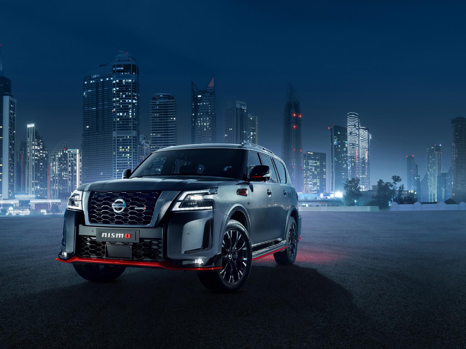 Обои Автомобиль Nissan Patrol Nismo 2021 года на фоне города