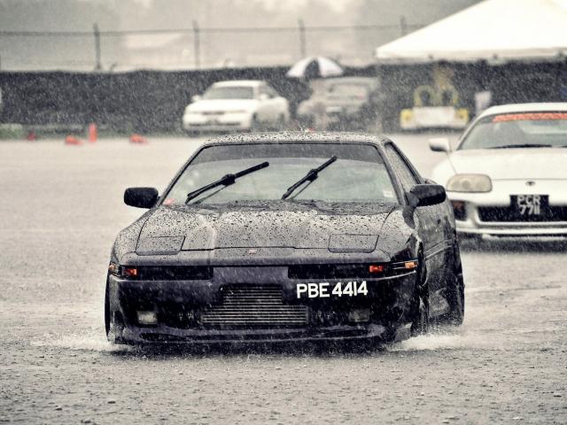 Обои Черный Nissan под дождем