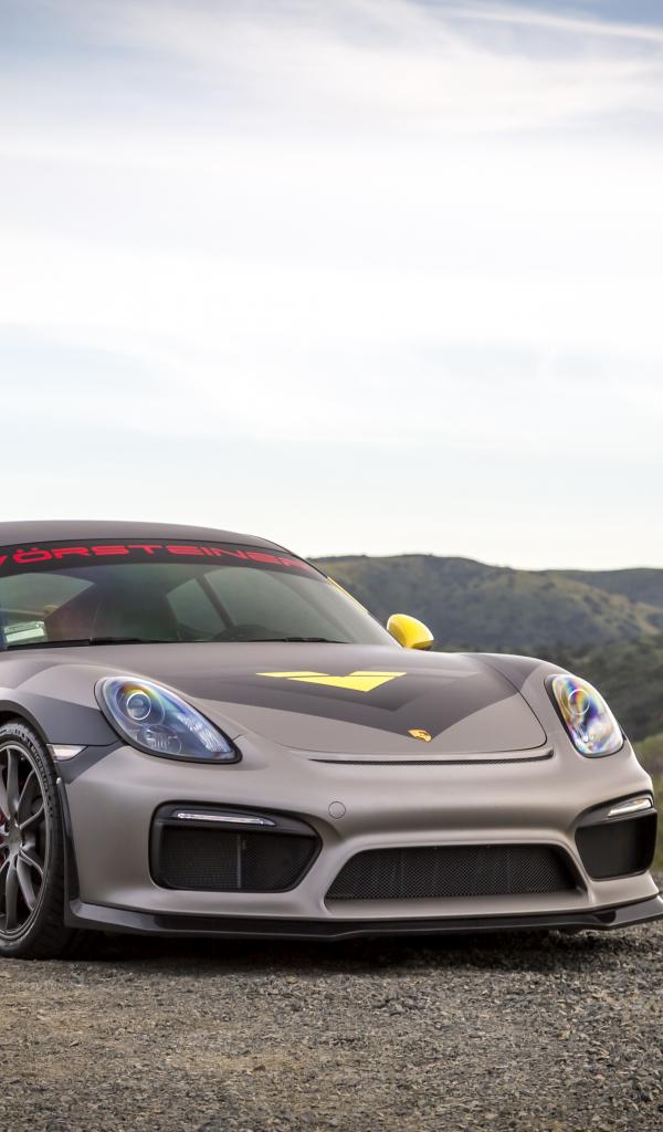 Обои Серебристый спортивный автомобиль Porsche Cayman GT4