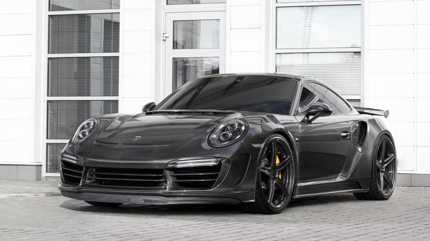 Обои Серый быстрый автомобиль Porsche 911 Turbo Stinger GTR, 2017