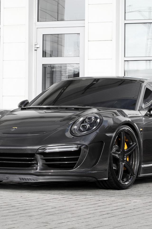 Обои Серый быстрый автомобиль Porsche 911 Turbo Stinger GTR, 2017