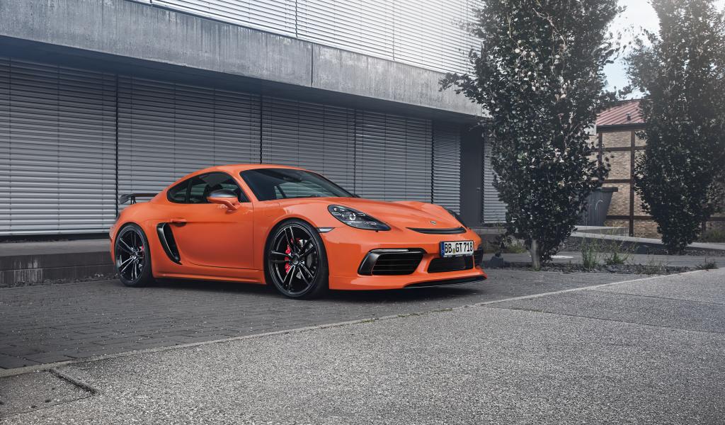 Обои Оранжевый автомобиль Porsche TechArt 718 Cayman, 2017