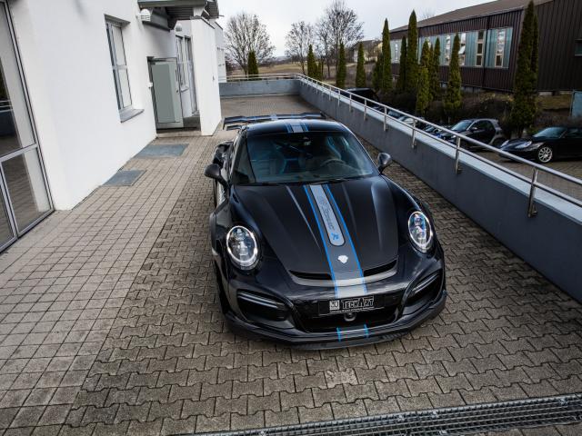 Обои Черный автомобиль Porsche TechArt 911 Turbo GT Street R, 2017
