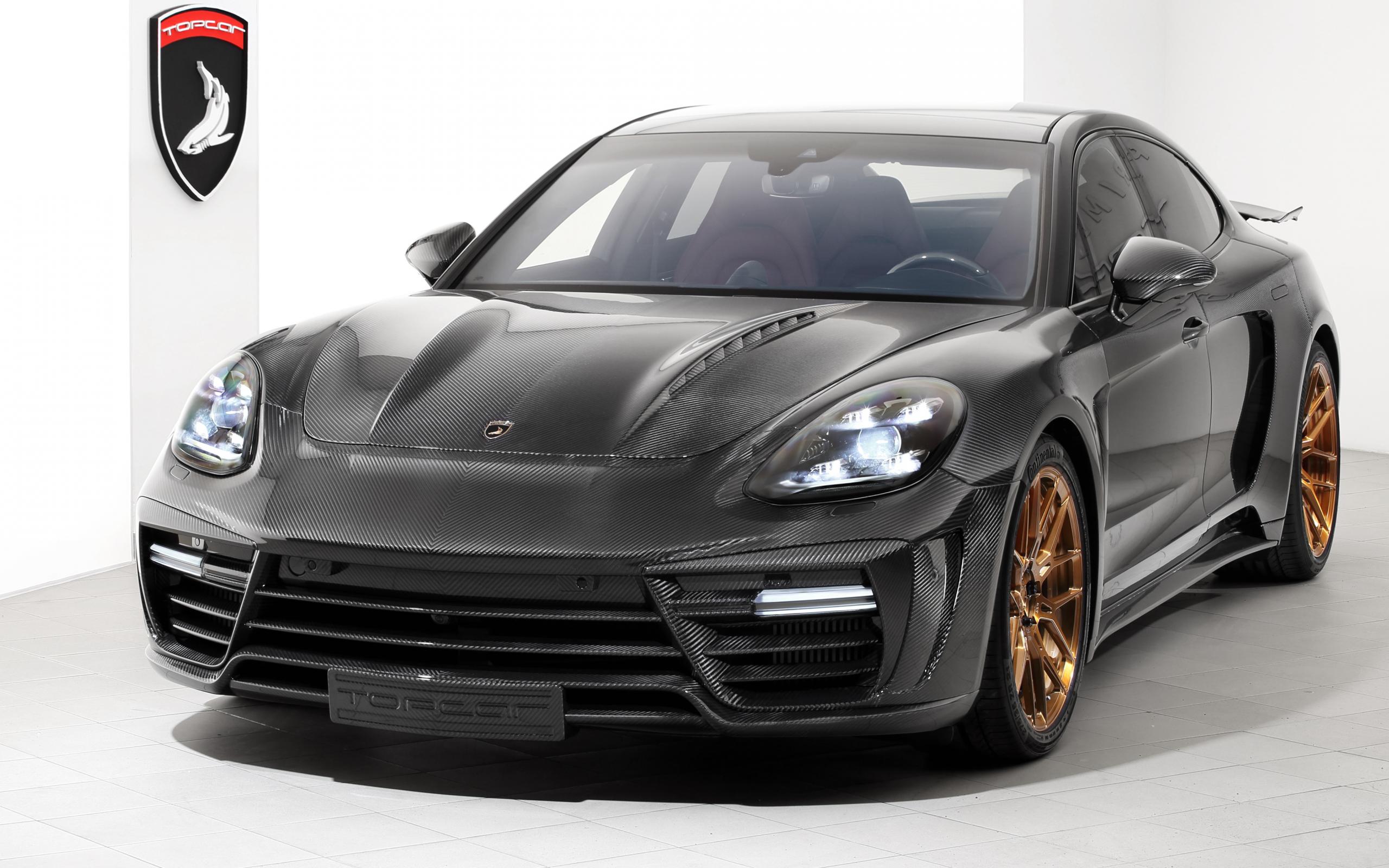 Обои Черный автомобиль Porsche Panamera Stingray GTR Carbon, 2018