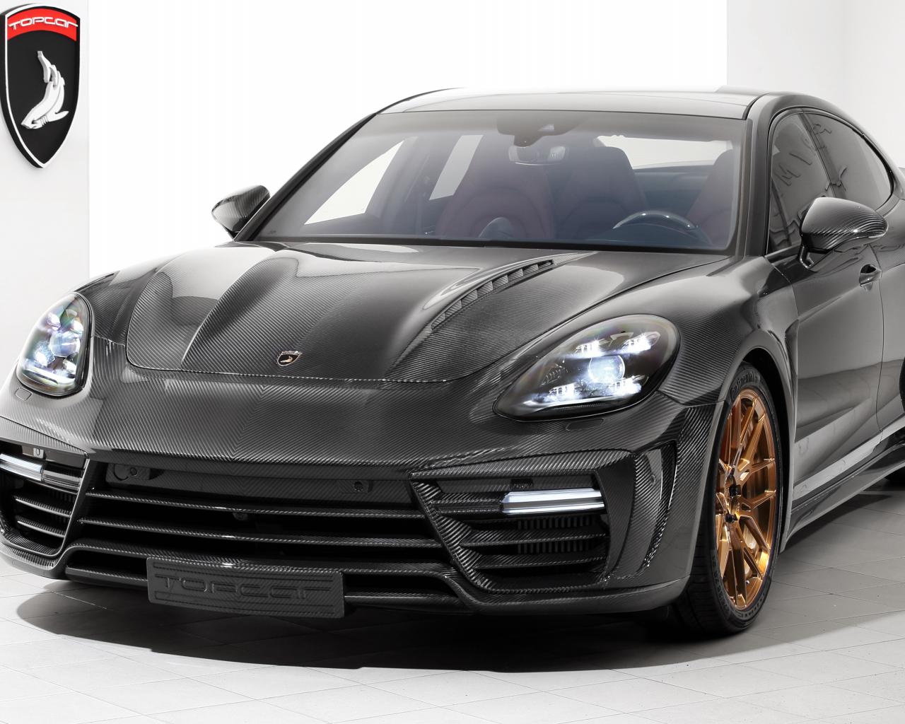 Обои Черный автомобиль Porsche Panamera Stingray GTR Carbon, 2018