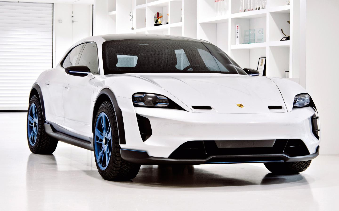 Обои Белый автомобиль Porsche Mission E Cross Turismo, 2018,