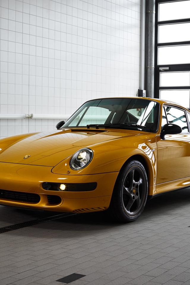 Обои Желтый Porsche 911 Turbo Classic Series, 2018 года в гараже
