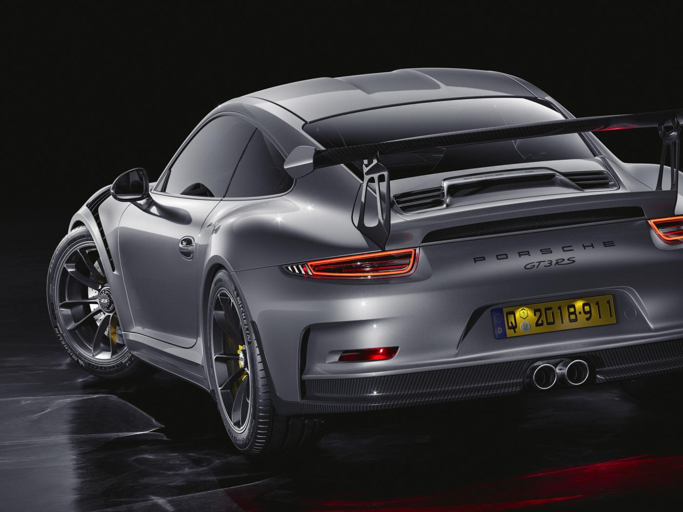 Обои Серебристый автомобиль Porsche 911 GT3 RS CGI вид сзади