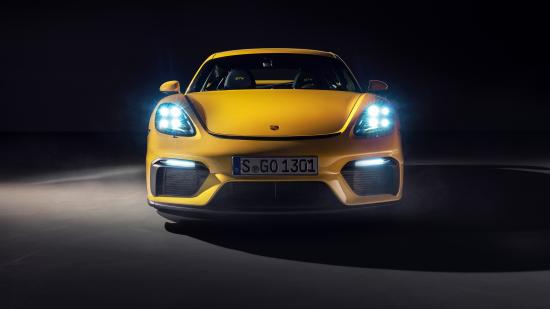 Обои Автомобиль Porsche 718 Cayman GT4, 2019 года с включенными фарами