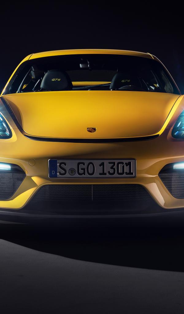 Обои Автомобиль Porsche 718 Cayman GT4, 2019 года с включенными фарами