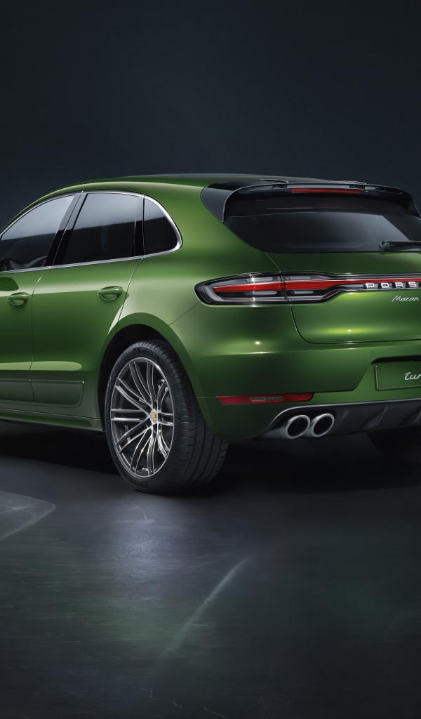 Обои Зеленый автомобиль Porsche Macan Turbo 2019 года вид сзади