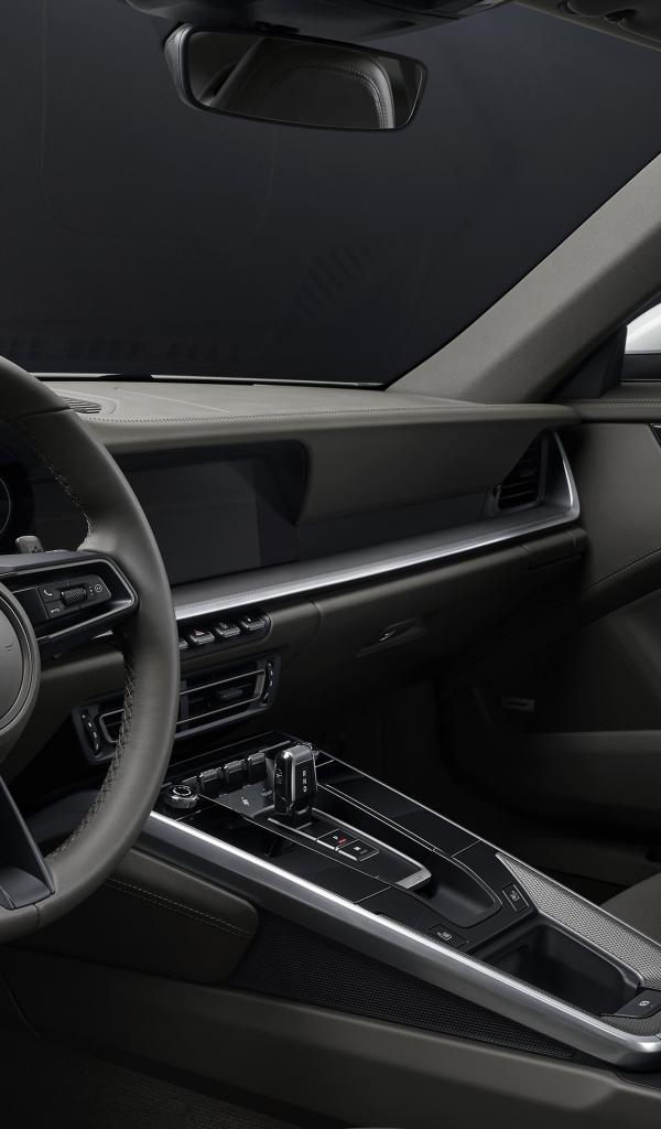 Обои Черный салон автомобиля Porsche 911 Carrera 4 2019 года