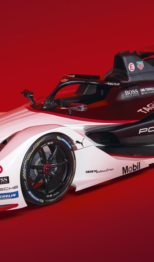 Обои Гоночный автомобиль Porsche 99X Electric 2019 года на красном фоне
